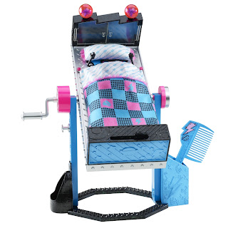 A cama espelho da frankie vem com a miniatura do diário dela (uma fofura!) uma caneta com a skulette da MH , um cobertor , travesseiro , e um lugar on se encaixa os parafusos da frankie ,  Tv , e a cama tem uma coisa legal ... um cantinho para o Watzit!!!(o pet da frankie)